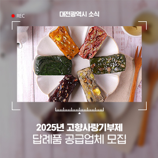 11월 12일(화)부터 13일(수)까지 ‘2025년 대전시 고향사랑기부제 답례품 공급업체’를 모집합니다. 모집 ...