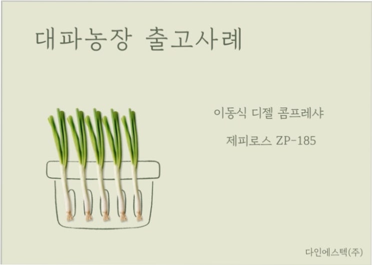 디젤 콤프레샤 설치 대파농장 납품 현장