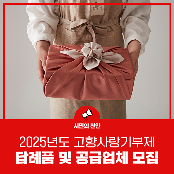 안녕하세요. 천안시입니다. 천안시가 2025년 고향사랑기부금을 기부한 분들께 제공할 답례품 공급 업체를 ...