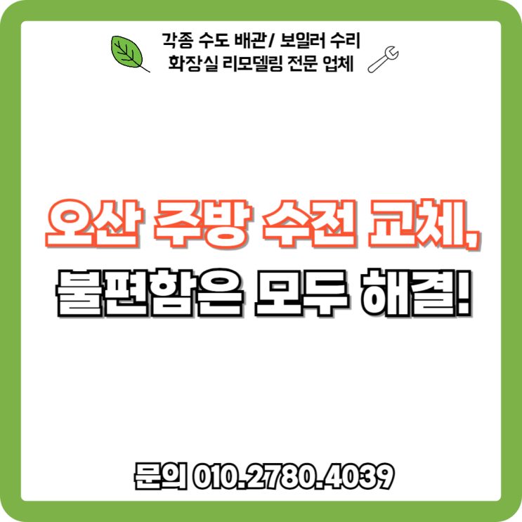 오산 주방 수전 교체 전문업체 평화설비 365일 연중무휴 운영 상담 및 의뢰 언제든 가능 010.2780.4039 안...
