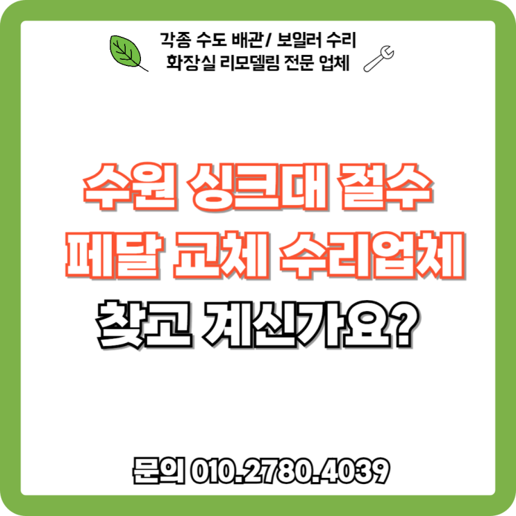 수원 싱크대 절수 페달 교체 수리업체찾고 계신가요?