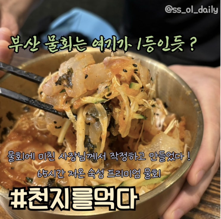 안녕하세요 딸기입니다 ?? 여름 막바지이지만 여름 별미음식 물회는 참을수 없쥬 ? 부산 서면 물회 ...