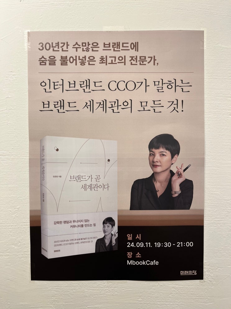 지난 9월 11일 수요일 서교동 엠북카페에서 <브랜드가 곧 세계관이다> 민은정 저자의 북토크가 열렸...