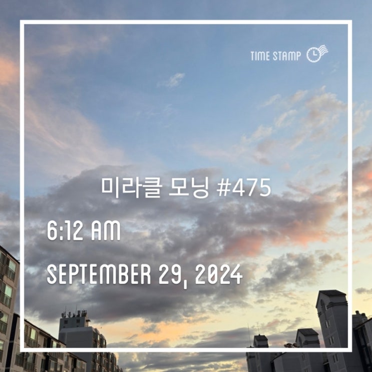 아침에 낮게 깔린 구름과 맑은 하늘을 사진에 담아 타임스탬프의 배경으로 적용했다. 눈으로 보이는 은은함...
