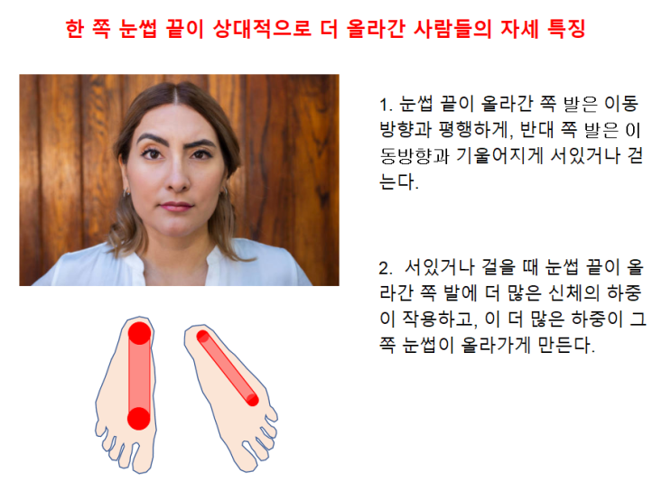 한쪽 눈썹 끝이 상대적으로 더 올라간 사람들의 자세 특징