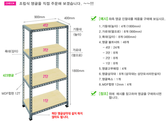 DSA-117 조립식 앵글진열대_ 합판별도 423_ W90cm*D40cm*H180cm_1칸4단 주문제품입니다.  ...