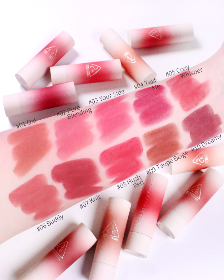 3CE 캐시미어 허그 립스틱 전색상 발색 ♥️ 부드러운 럭셔리 드뮤어룩 연출에 딱
