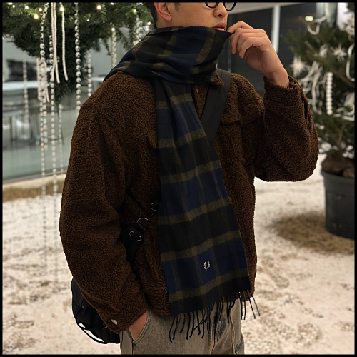 짧은 남자 목도리 매는법 3가지, 프레드페리 체크 머플러 코디
