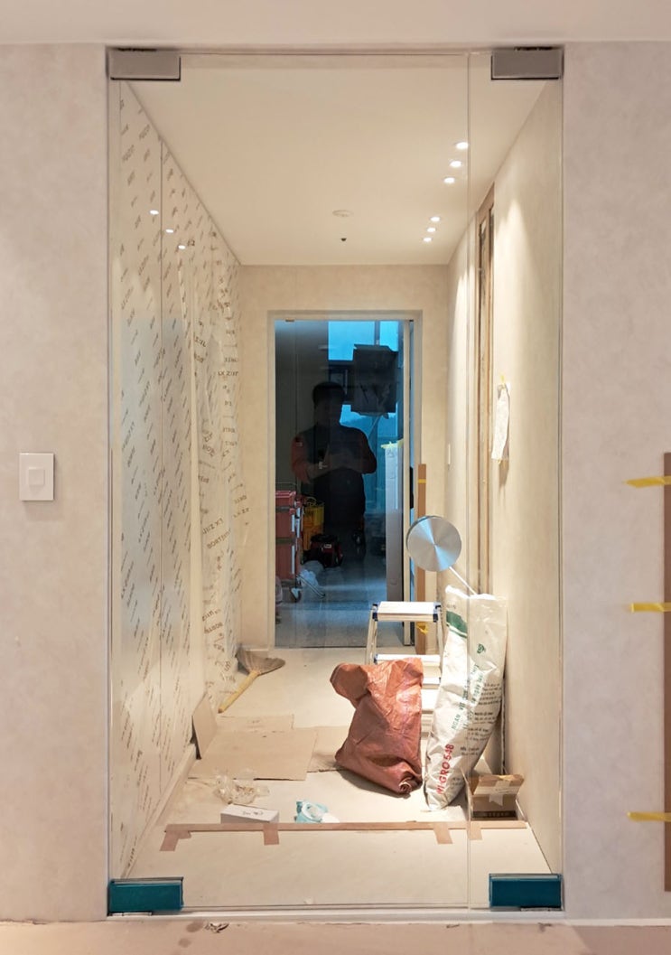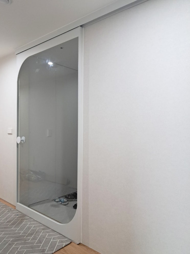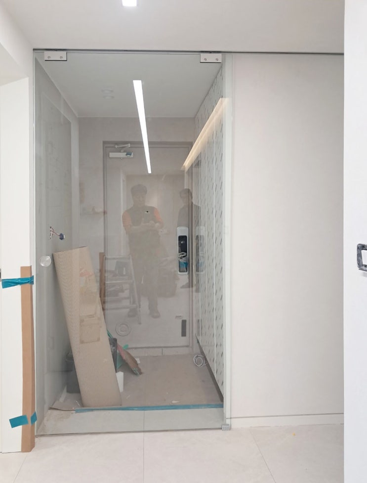 신원마을 호반베르디움에 시공한 현관 무프레임 가네모도어