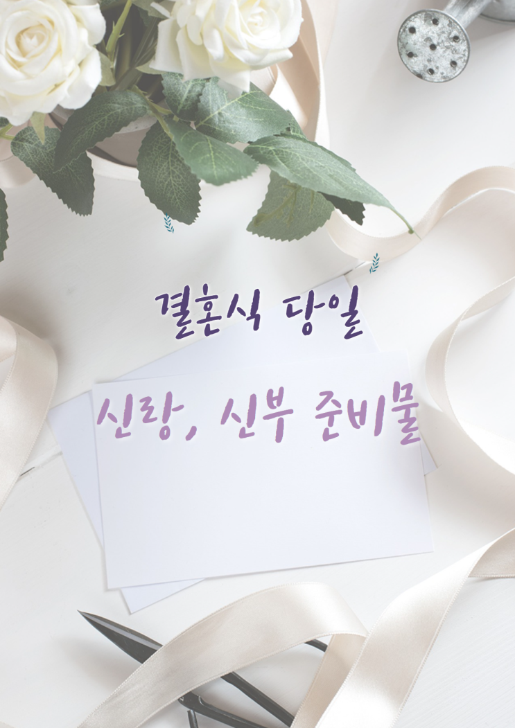 결혼식 당일은 정말 바쁘고 정신이 없는데요, 오늘은 결혼식 예식 당일 신랑, 신부가 꼭 챙겨야할 준비물과...