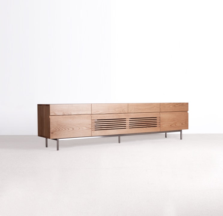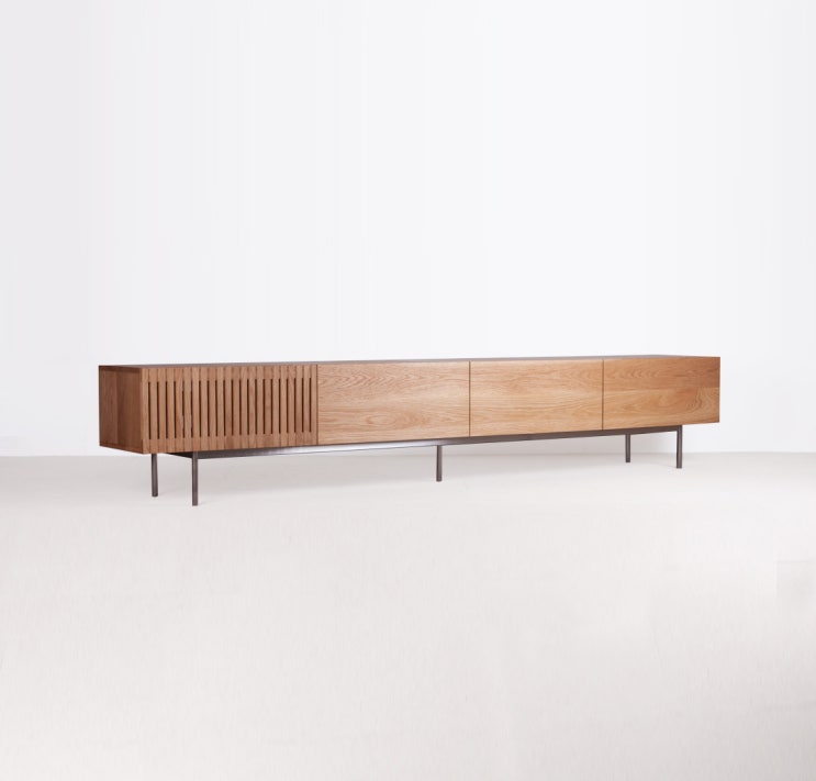 화이트오크의 따뜻함과 세련된 비대칭 디자인의 2800사이즈 낮은거실장 입니다, 오스모천연오일에 북미산 오크로 100% 핸드메이드로 제작된 낮은거실장 입니다.