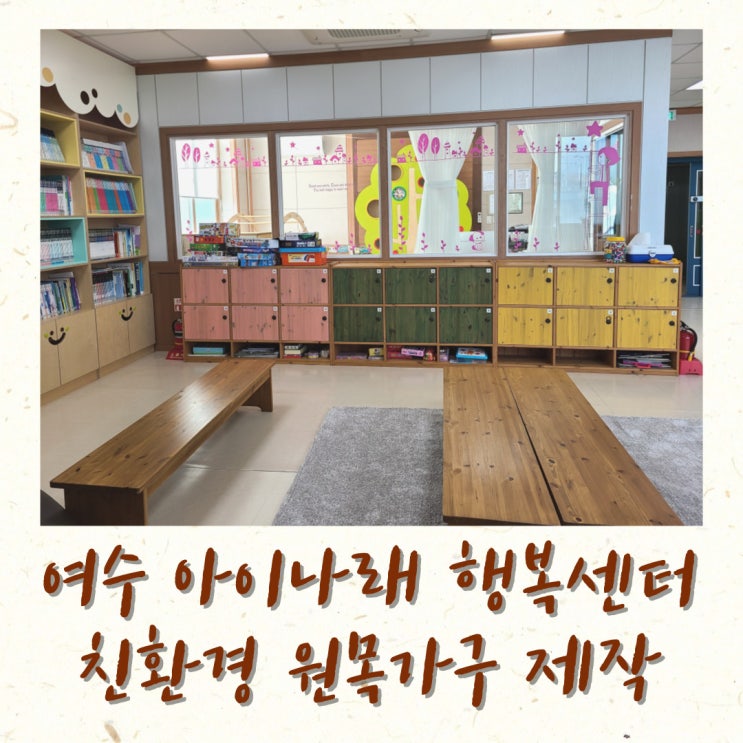 안녕하세요, 여수 자연공방입니다. 자연공방에서는 어린이집, 초등학교에 원목 맞춤가구를 주문 제작해 드...