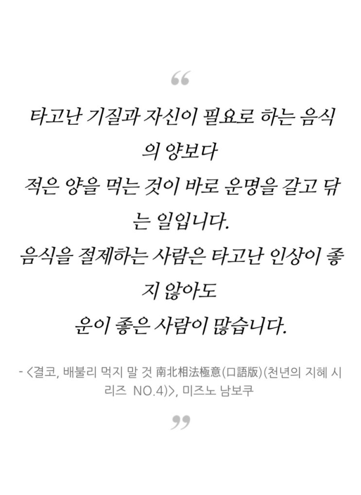 #절제 #미즈노 남보쿠 #성공 #행복 #음식 #결코, 배불리 먹지 말 것 #천년의 지혜 시리즈 생명이란 음식에 ...