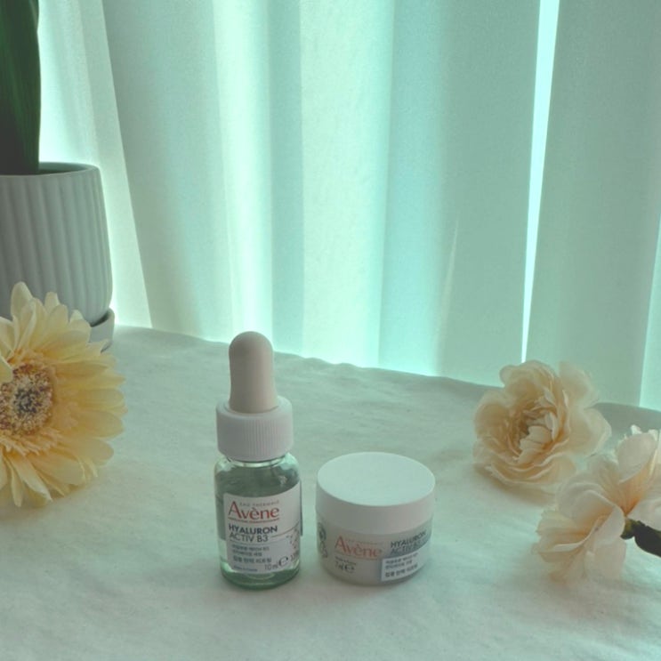 안녕하세요, 릴리입니다! 오늘은 아벤느 제품을 가지고 왔습니다. 히알루론산 액티브 B3세럼과 크림이에요...