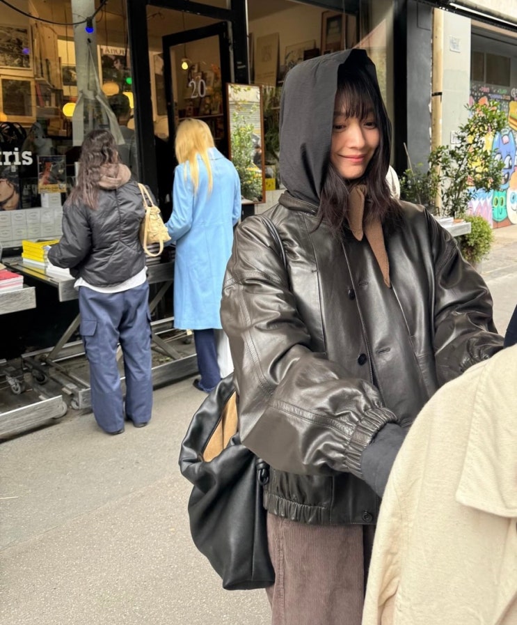 르메르 가죽점퍼 착용한 신민아의 10도 옷차림