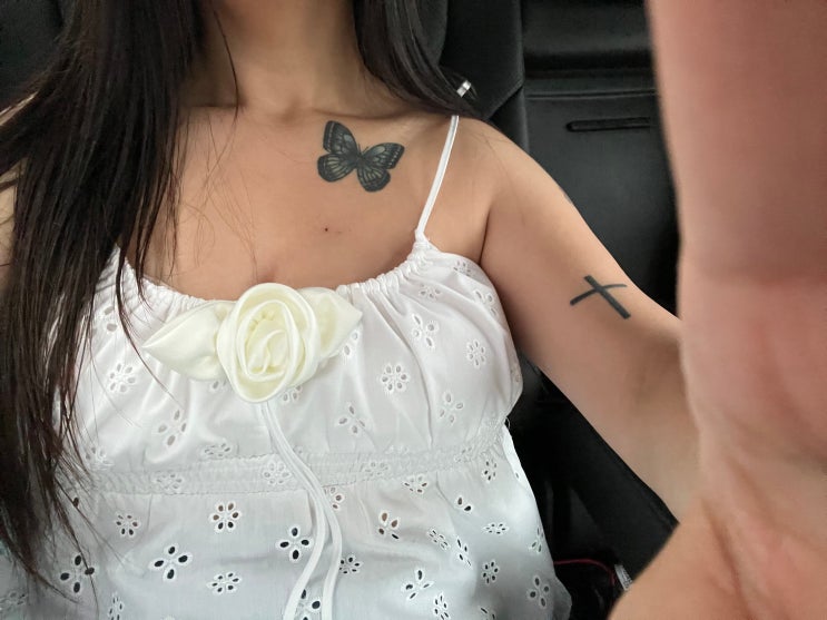 디자인은 예쁜데 나한테 작을까봐 선뜻 구매는 못하고 ♥찜만 하고 있었는데 세일하길래 입어나보지뭐 하고...
