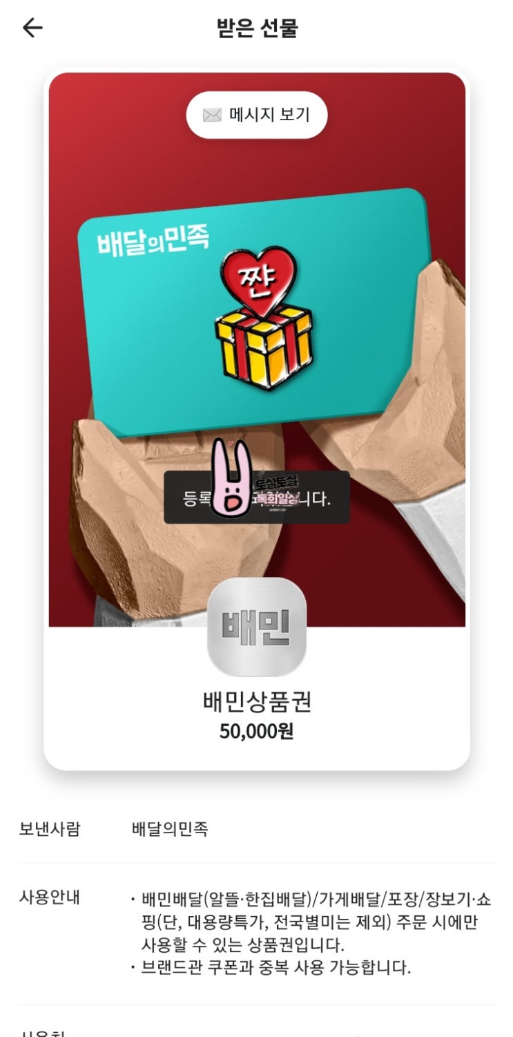 선물 받은 배달의민족 상품권 기프티콘 배민 교환권 등록 사용하기