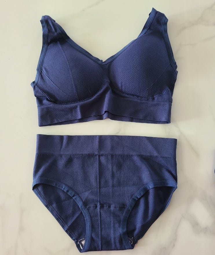 안녕하세요~~~ 이번에 새로 구입한 네이비 브라와 팬티 세트 후기를 남겨요 최근에 5키로를 감량하고 전체...