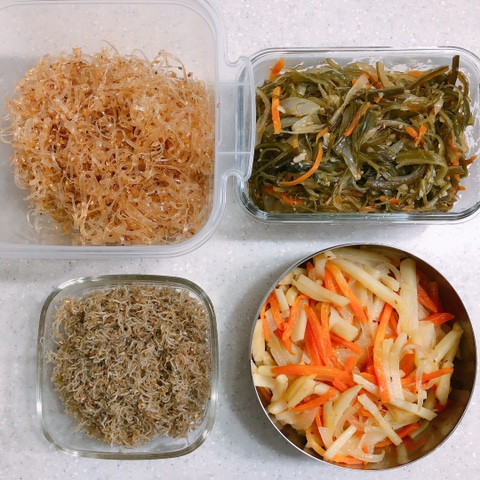 오늘의 밑반찬 감자채볶음,미역줄기볶음,멸치볶음,오징어채볶음 볶음천국