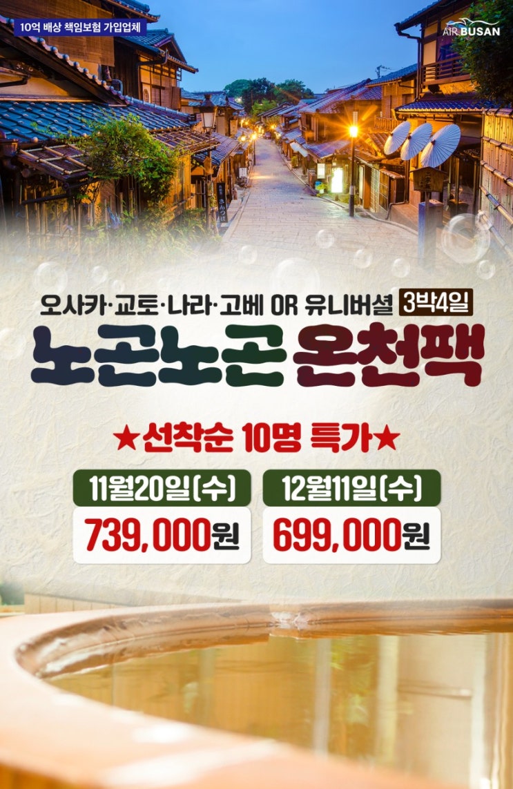 #부산출발오사카패키지 #✨노곤노곤 온천팩✨오사카/나라/고베/교토or유니버셜 3박4일 ?선착순 특가 11/20 => 739,000원, 12/11 => 699,000원