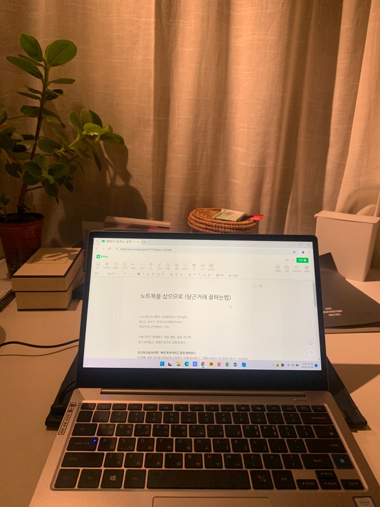 노트북을 당근했다. 눈팅만하다 드디어 샀다. 용도는 글쓰기. 작가가 되기위한 투자다. 역사적 첫 글인셈이...