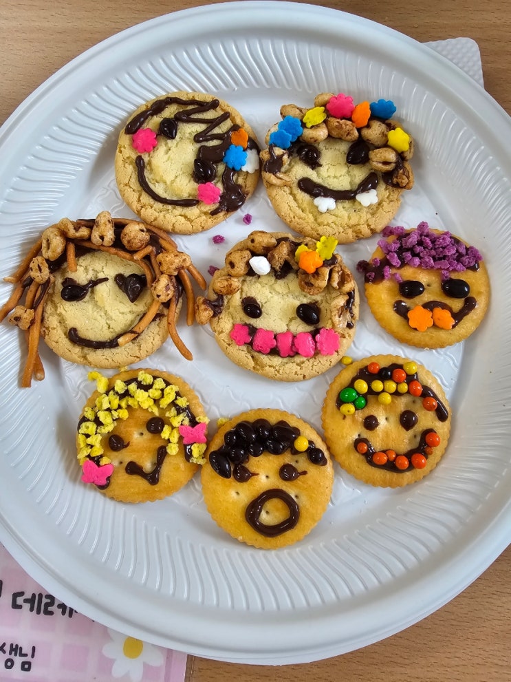 2학기 맞이 이벤트로 나의 얼굴을 과자로 표현해보는 시간을 갖았어요 준비물 : 사브레, 라면땅, 죠리뽕, ...