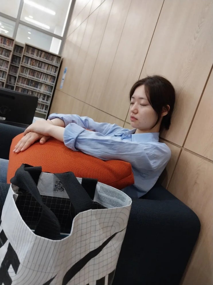 5월 2일 공강시간에 밥을 먹고 도서관에 컴퓨터를 사용할 수 있는 곳에서 잠깐 자고 있었어요. 언니랑 같이...