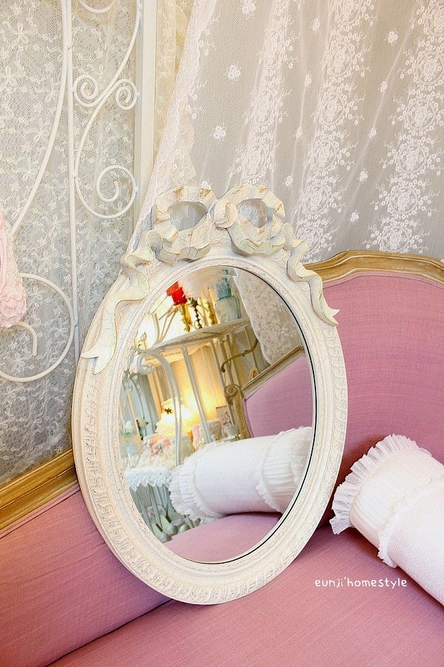 [거울] 쉐비 크림 타원 리본 크랙거울이에요~ 2가지 사이즈고요~