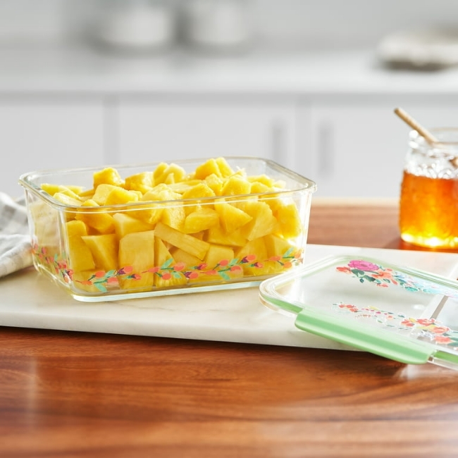 [반찬통] 빈티지 그린 플로라 대형 사각 글라스 반찬통이에요~