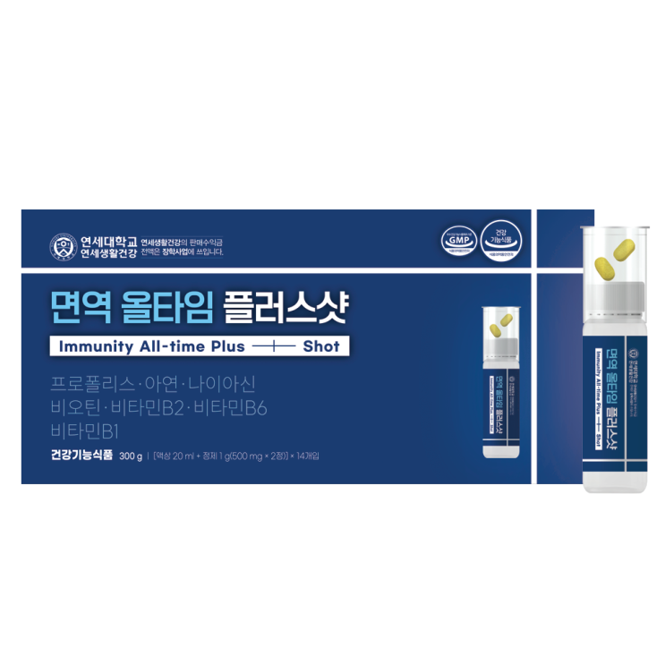 [연세생활건강] 면역 올타임 플러스샷 (액상 20ml + 정제 500mg x 2정) x 14병 (총 300g) 소비기한: 2026년...