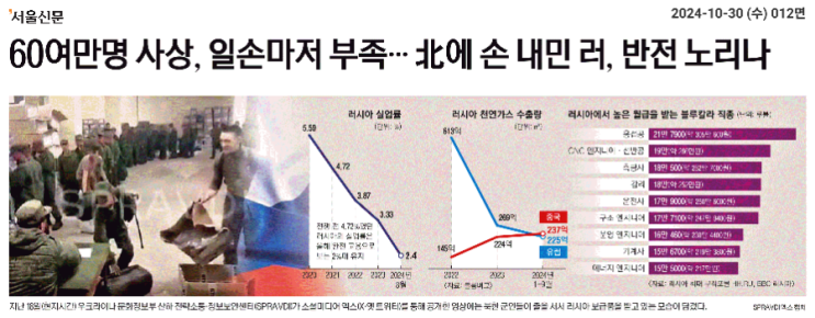 [서울 241030] 60여만명 사상, 일손마저 부족… 北에 손 내민 러, 반전 노리나