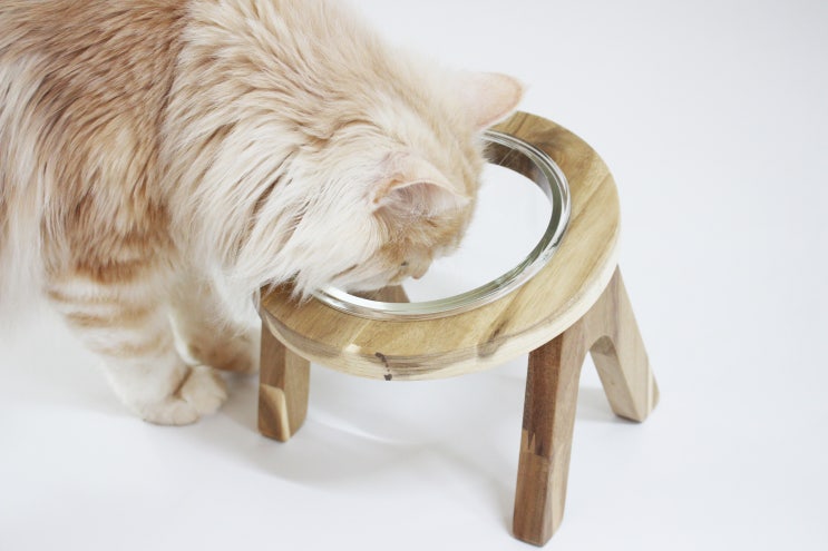 장콩펫 고양이밥그릇, 물그릇 투명한 유리 고양이식기 아카시아 원목으로 만들어진 원목 고양이식기를 찾으...
