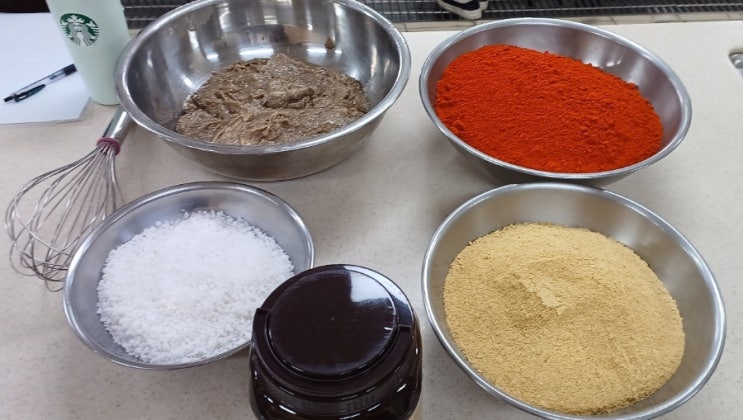 <재료> 1.고추장용고추가루 1.8키로 2.메주가루 1 키로 3.띄운보리 2키로 4.쌀조청 3키로 5.소금 1키...