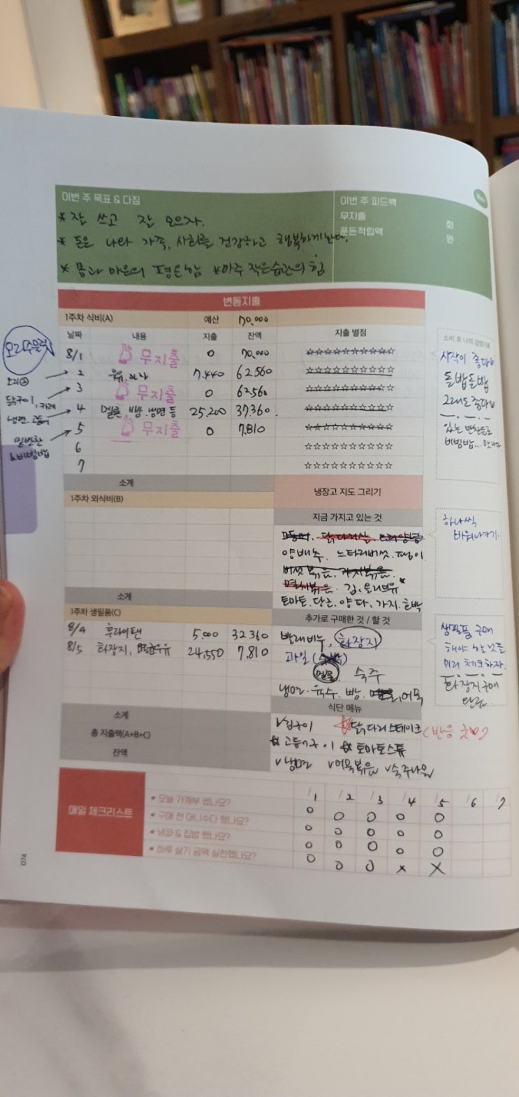 한 달을 5주로 나누고 365일 자동 절약 시스템으로 매일 돈을 쓰는 식비, 외식비, 생필품비를 관리하고 월 ...