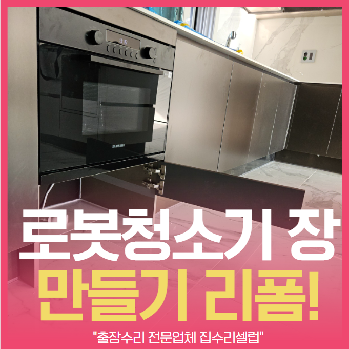 빌트인 오븐가스레인지 수납장 탈거 후 로봇청소기 보관함 리폼 재단 설치