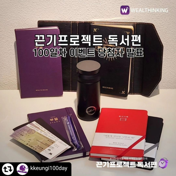 끈기프로젝트 독서편 100일완주 이벤트 여유맘 당첨^^