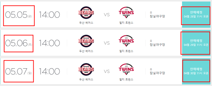 5월 엘지트윈스 홈경기 예매일정 공유 비가와서 어린이날 더비의 마지막 경기만 펼쳐 졌었던 오늘 두산을 ...