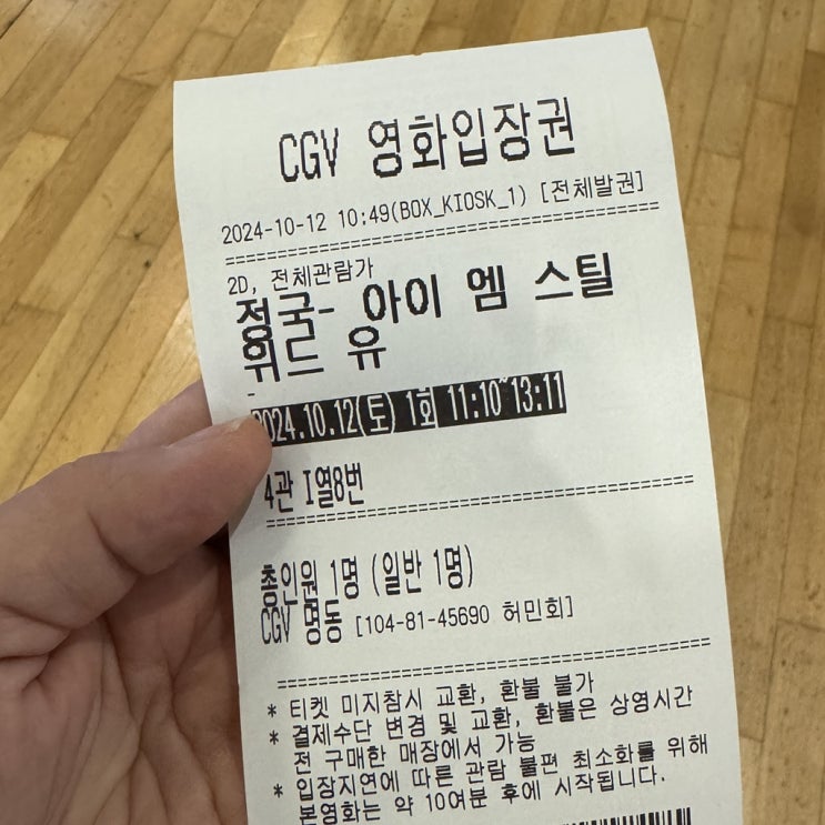 어제 밤 남편과 막걸리 한 잔 하면서 내일 뭐하지... 고민하던 중... 정국:아이 엠 스틸 예매해서 보기로 ...