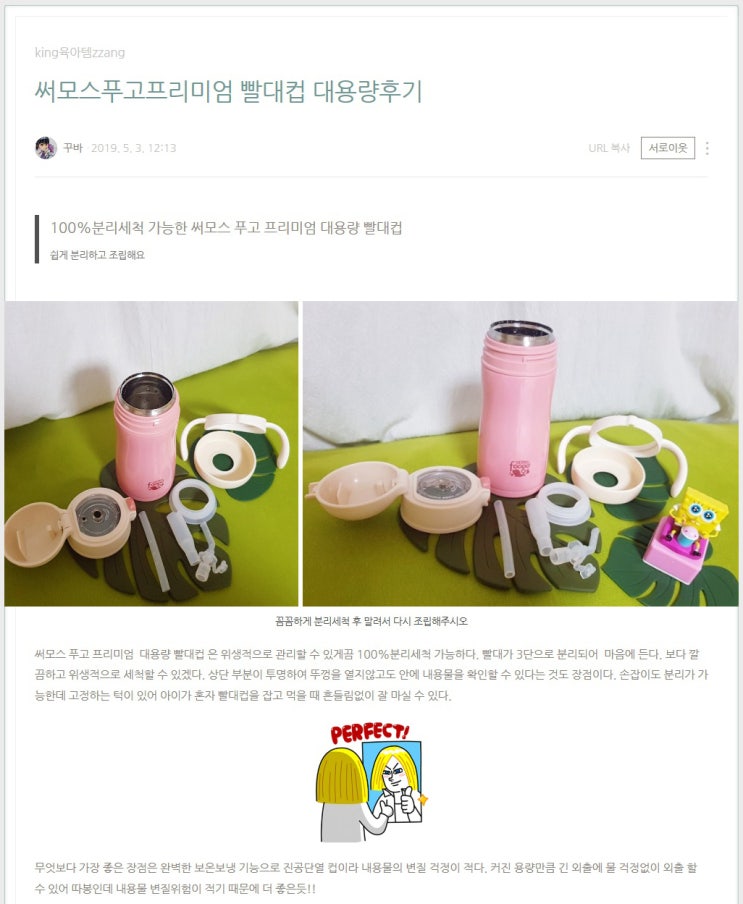[푸고프리미엄] 써모스 푸고 진공단열빨대컵 TKFB-350S 푸고빨대컵 후기- -랄라밍밍(dodomihee)님의 ...