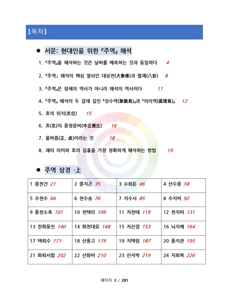 주역 상권 목차 서문: 현대인을 위한 『주역』 해석 1. 주역을 해석하는 것은 날씨를 예측하는 것과 동일하...