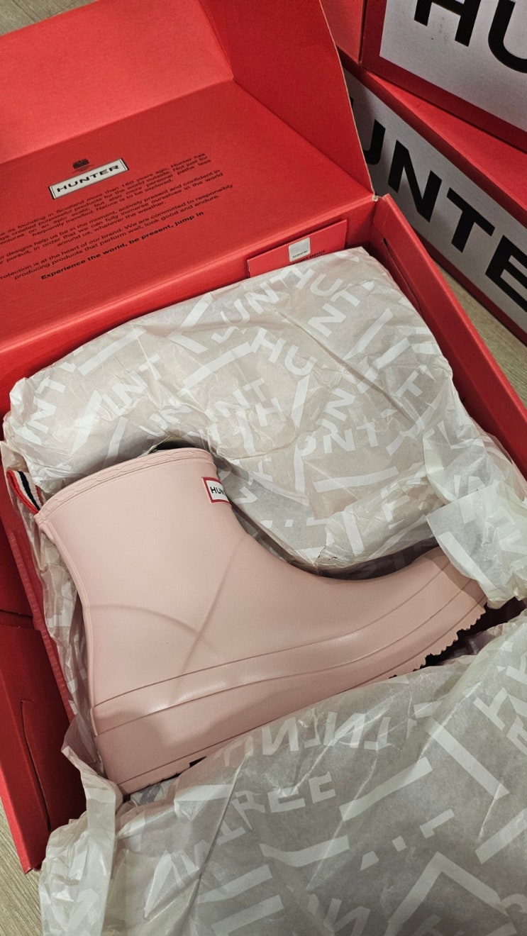 Hunter 헌터 레인부츠 플레이 숏 웰링턴 부츠 핑크 공홈구매후기.
