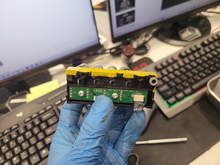 [서울 중랑구 무한잉크 출장수리] HP OfficeJet Pro 7740 팩스복합기 소모품 시스템 문제, 칩판부 비닐탈락 HP 952 프린트 헤드 분해 수리