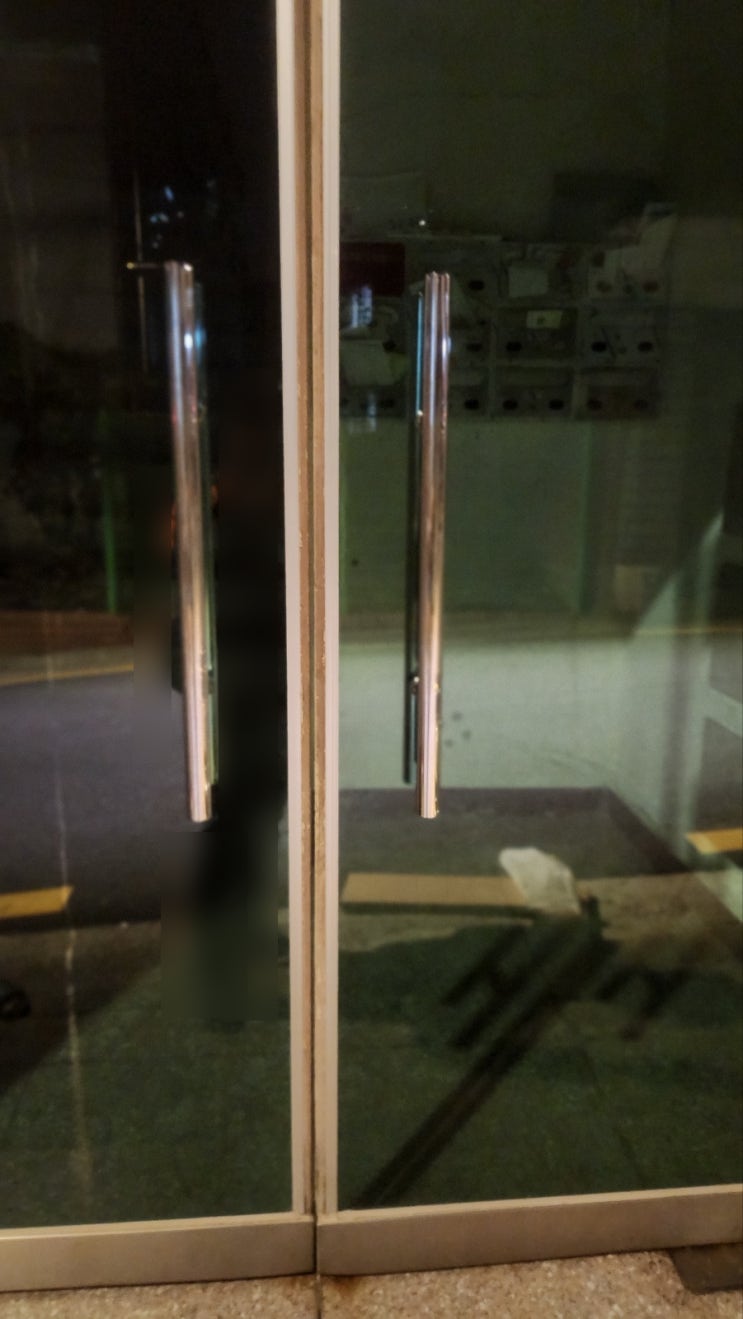 용산구 남영동 근방 빌라 출입 유리문 손잡이가 노후되어 교체 진행함. 강화도어수리