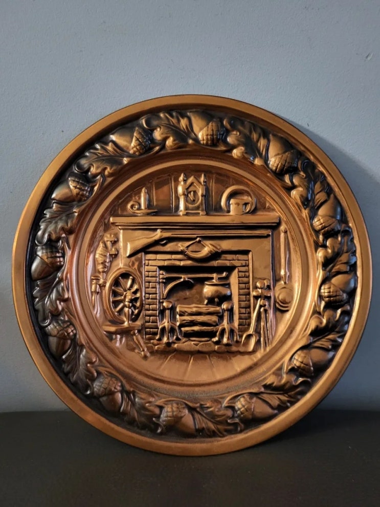 27센티 레어한 유니크 미드센트리 copper(동) 입체 부조 접시겸 액자에요 솔리드 카퍼로 두드림 방식으로 ...