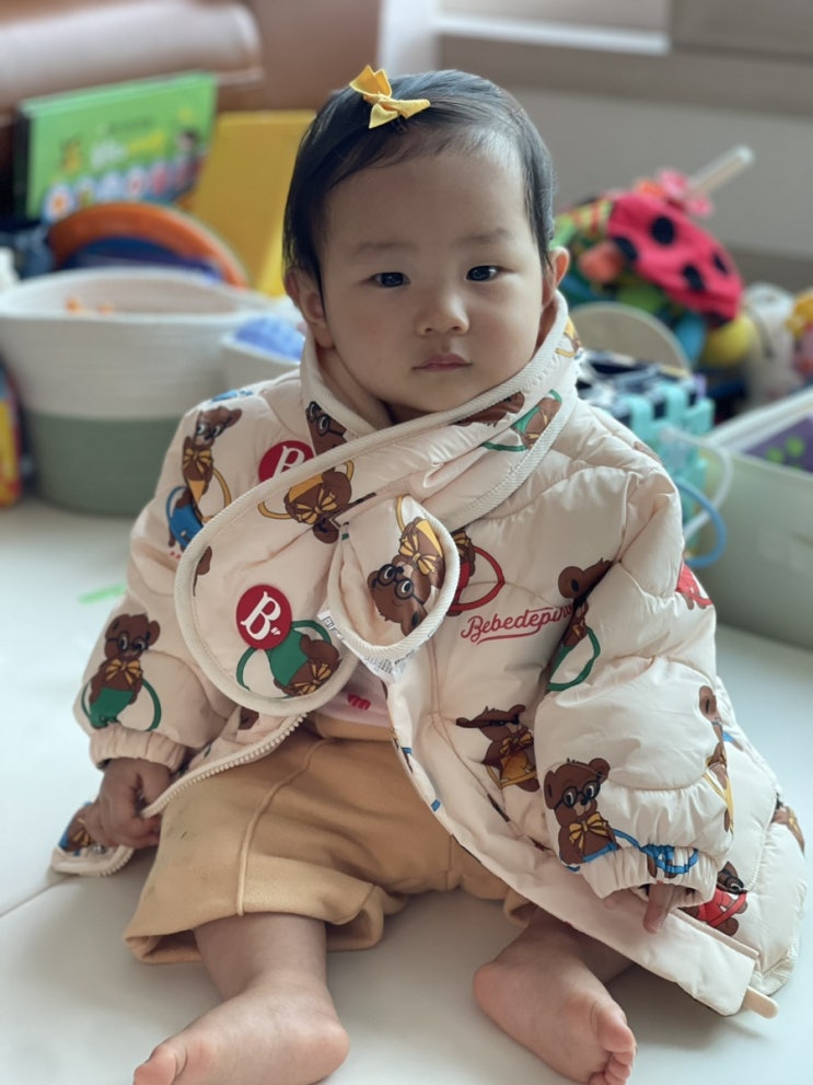 베베드피노 패딩 90 사이즈 9개월아기 착용샷