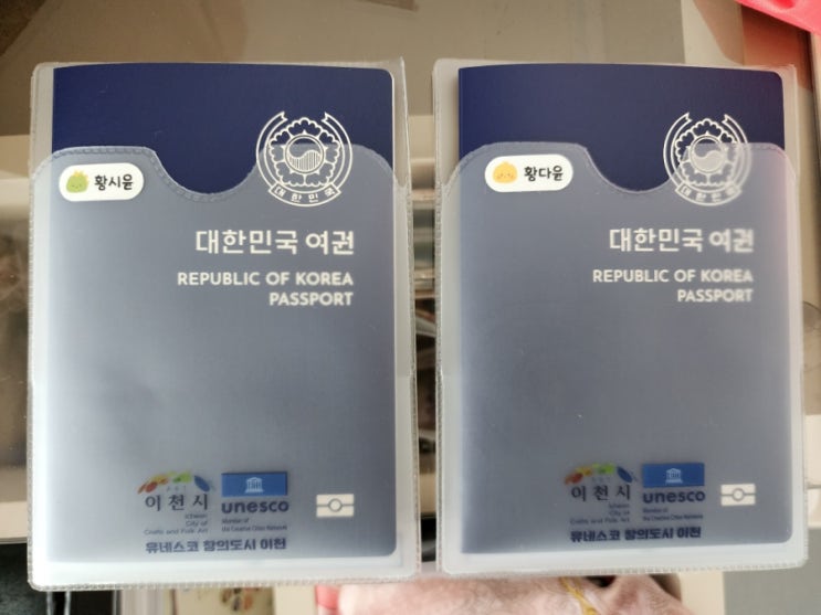 여권 새로 발급 받은 아이들 여권 바뀐 여권 처음 봄 비상식량 혹시 몰라 최소한으로만 산 것들 핸디선풍기...