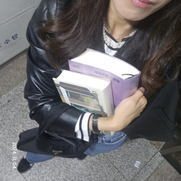 OOTD_초겨울 (가죽자켓, 세인트제임스 밍콰이어, 진주목걸이, 와이드팬츠, 아디다스삼배블랙, 프라다 리나일론)
