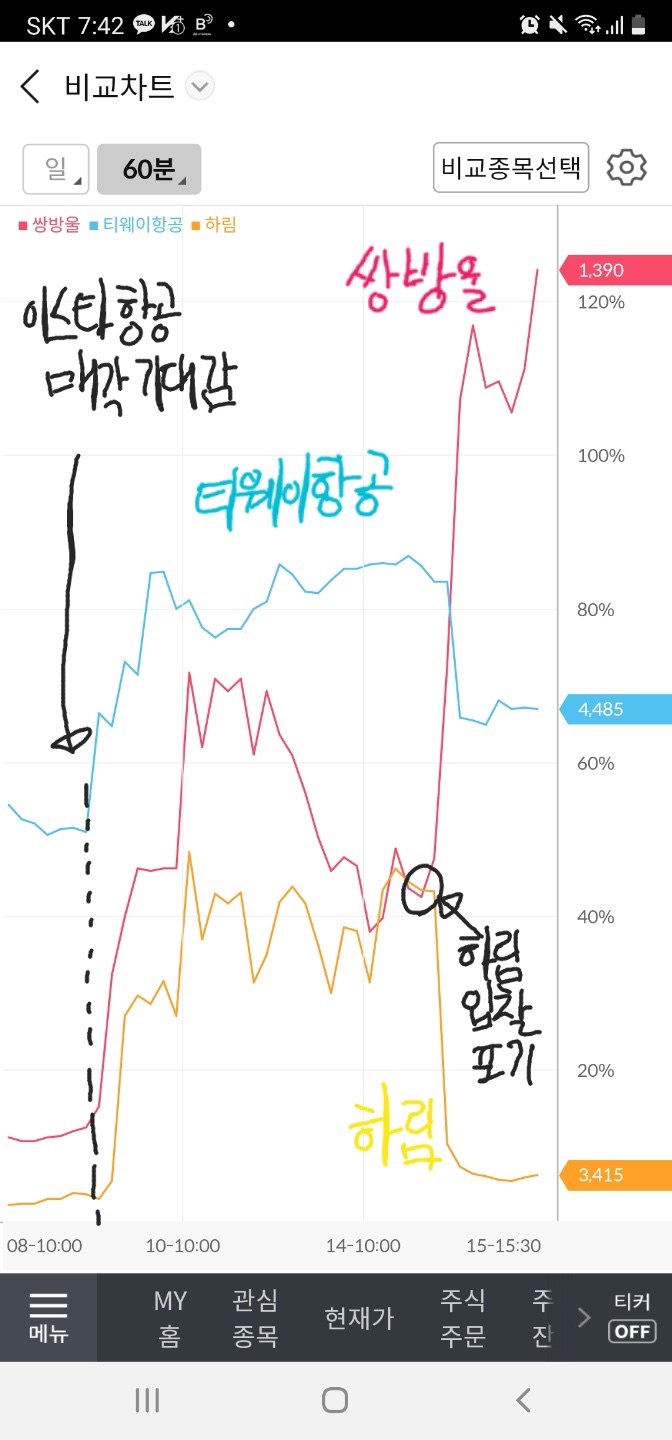 이스타항공 관련주 - 쌍방울, 티웨이항공 주가