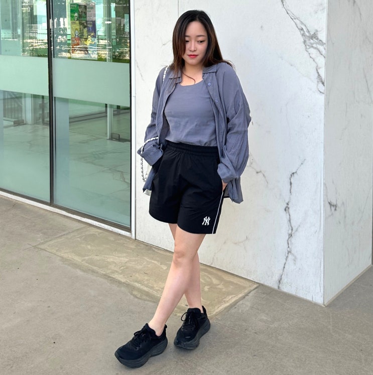 여름 바지 고민 끝 여성 반바지 엠엘비 MLB 블랙 숏츠 코디 LOOK