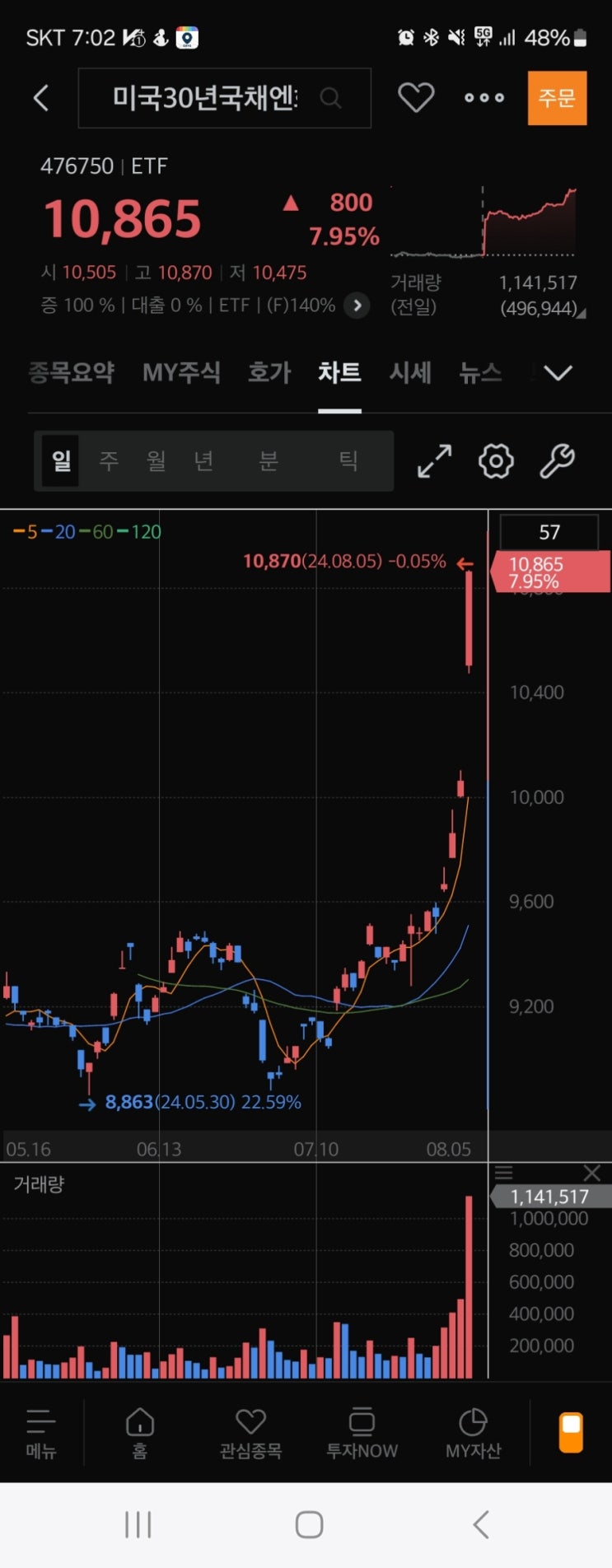 와... 10년물국채 8월 5일에는 2.8까지 떨어짐 지금도 2.9프로수준으로 계속 떨어지고 있음. 파도의 방향을...